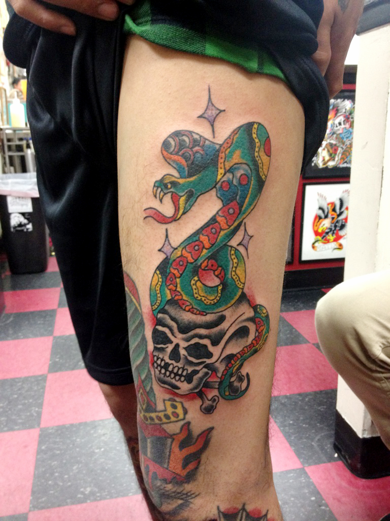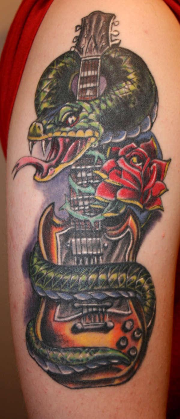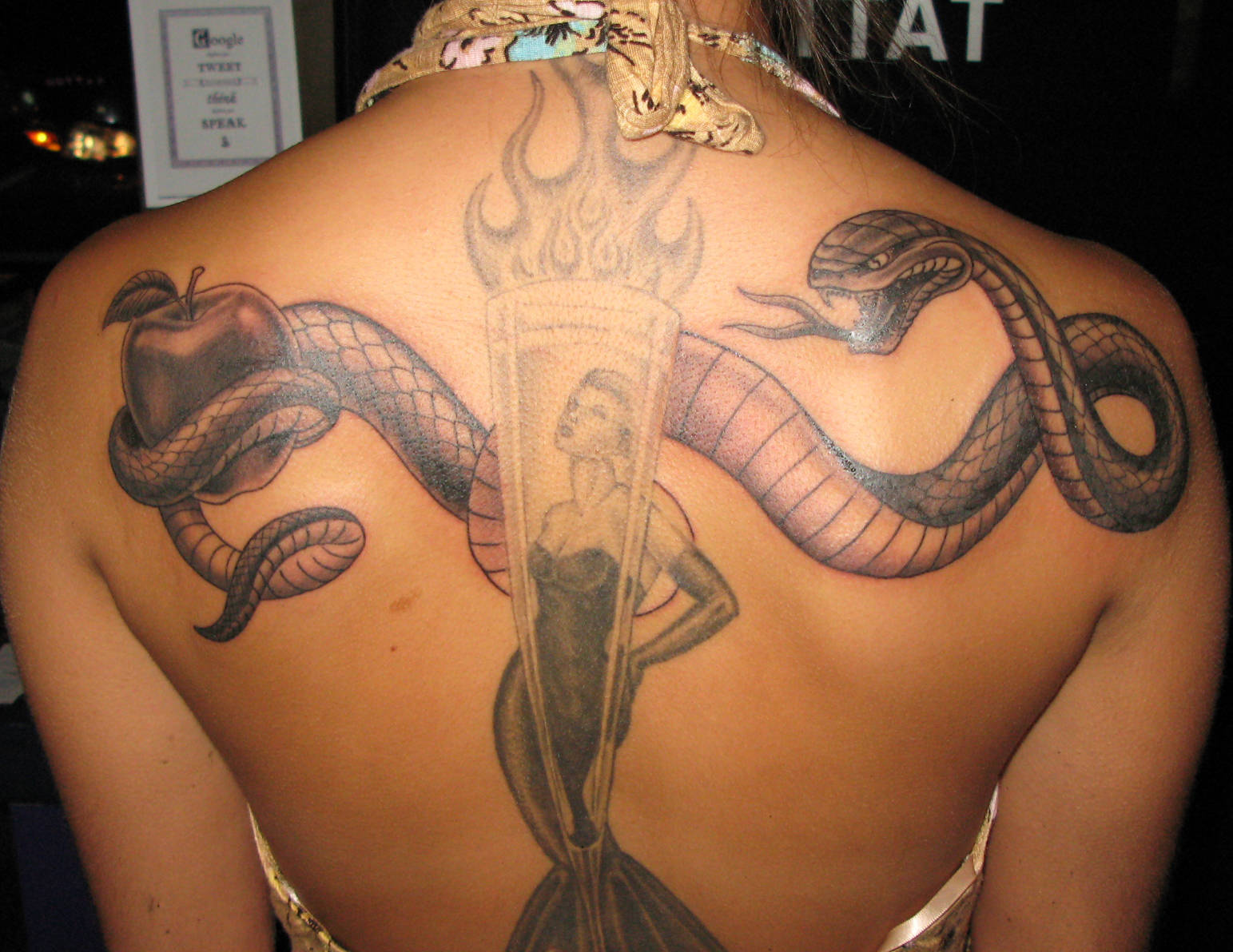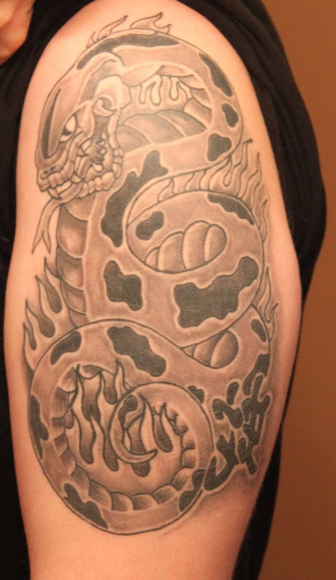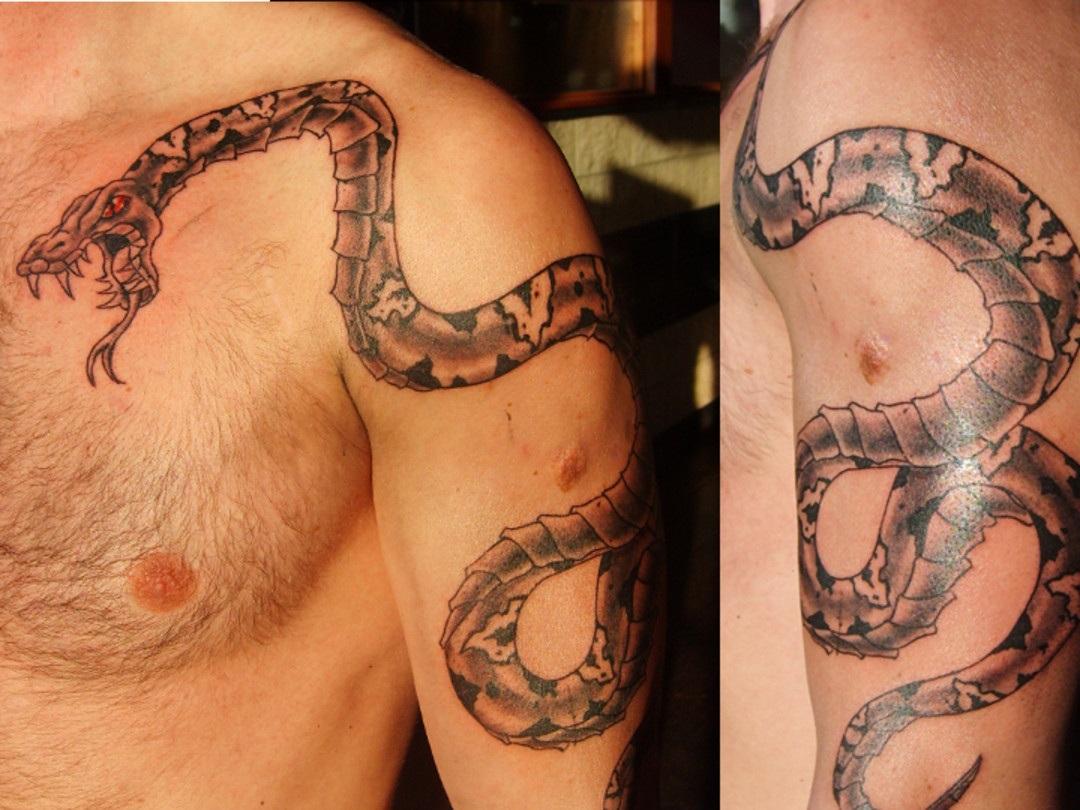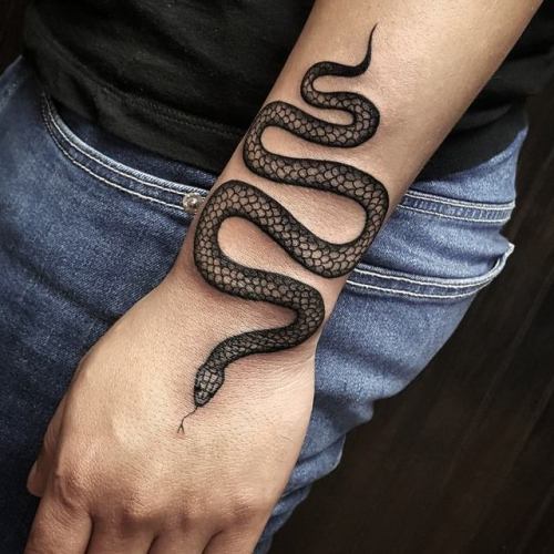13/06/2018Snake tattoos are some of the most interesting tattoo designs that one can ever get. Although often associated with a sense of darkness, danger and allure, it can have many positive meanings as well and can be worn by both sexes. Snakes were considered as important, virtuous creatures in many cultures of ancient times, and have inspired countless myths, legends, stories, fables and folklores. The snake or the serpent is associated with sin, temptation and evil in Bible, who is ultimately held responsible for the fall of man. However, the snake is also associated with wisdom, knowledge, fertility and healing as well as the qualities of patience, power and protectiveness. In occult and mystical knowledge, the snake Ouroboros is associated with regeneration and eternity. Other attributes associated with snake tattoos include transformation, cycles of life, awareness and death. Snake tattoos can look very dynamic and alluring, or they can have a calm composure. They can also be very colorful, and popular shades include red, black, yellow, green and orange. A snake tattoo can sometimes be accompanied by the image of a skull, to give it a more gothic look.